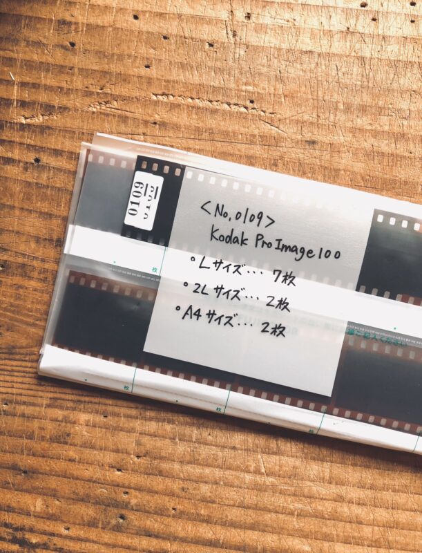 この時に【ネガ番号・フィルムの銘柄(わかれば)・サイズ・枚数】をメモに記入してまとめておくと、後から確認がしやすくなります。