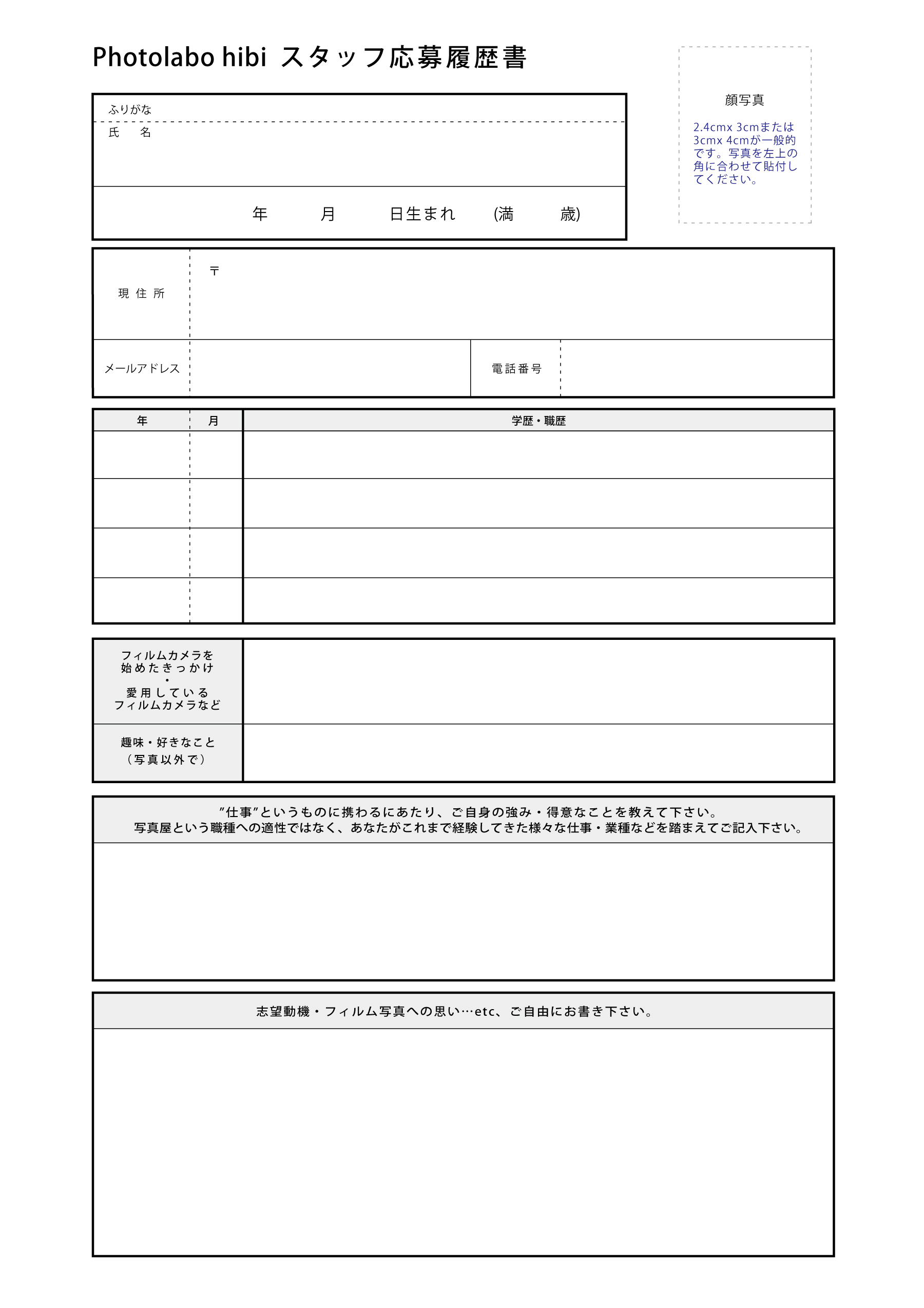 Photolabo hibiスタッフ応募係宛